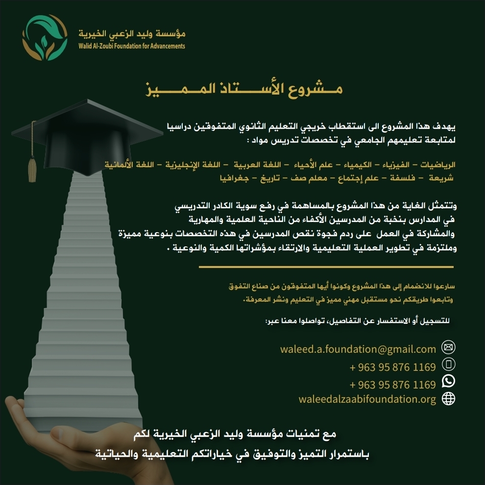القائمة السابعة للمقبولين في منحة مؤسسة وليد الزعبي الخيرية